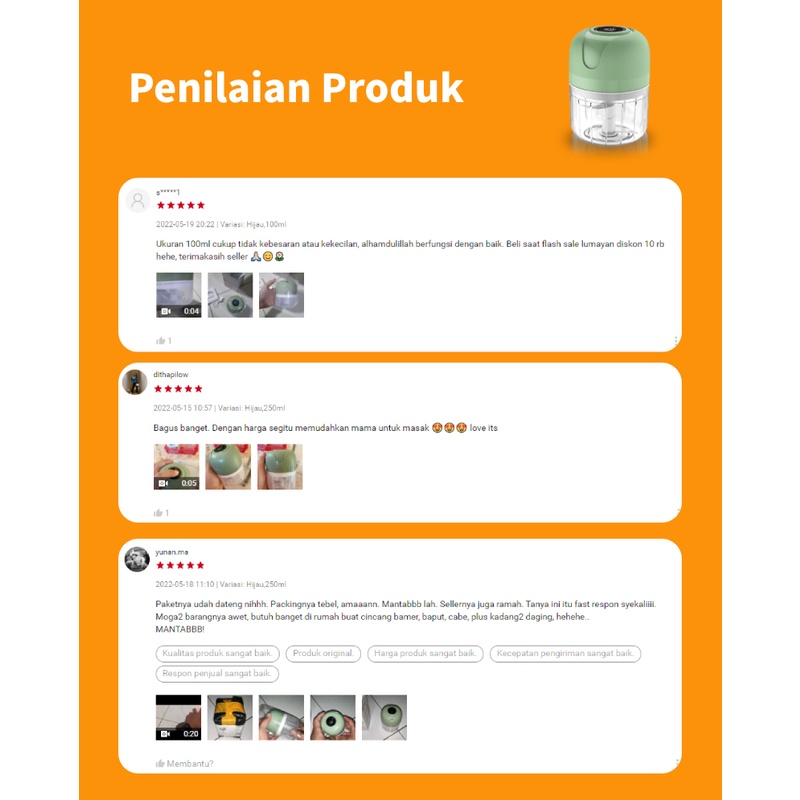 Kekurangan - Kekurangan membeli EARISE Blender Portable Alat Penggiling Pencincang Bumbu Dapur Elektrik Tanpa Kabel Mini Chopper 250ML di Toko ini